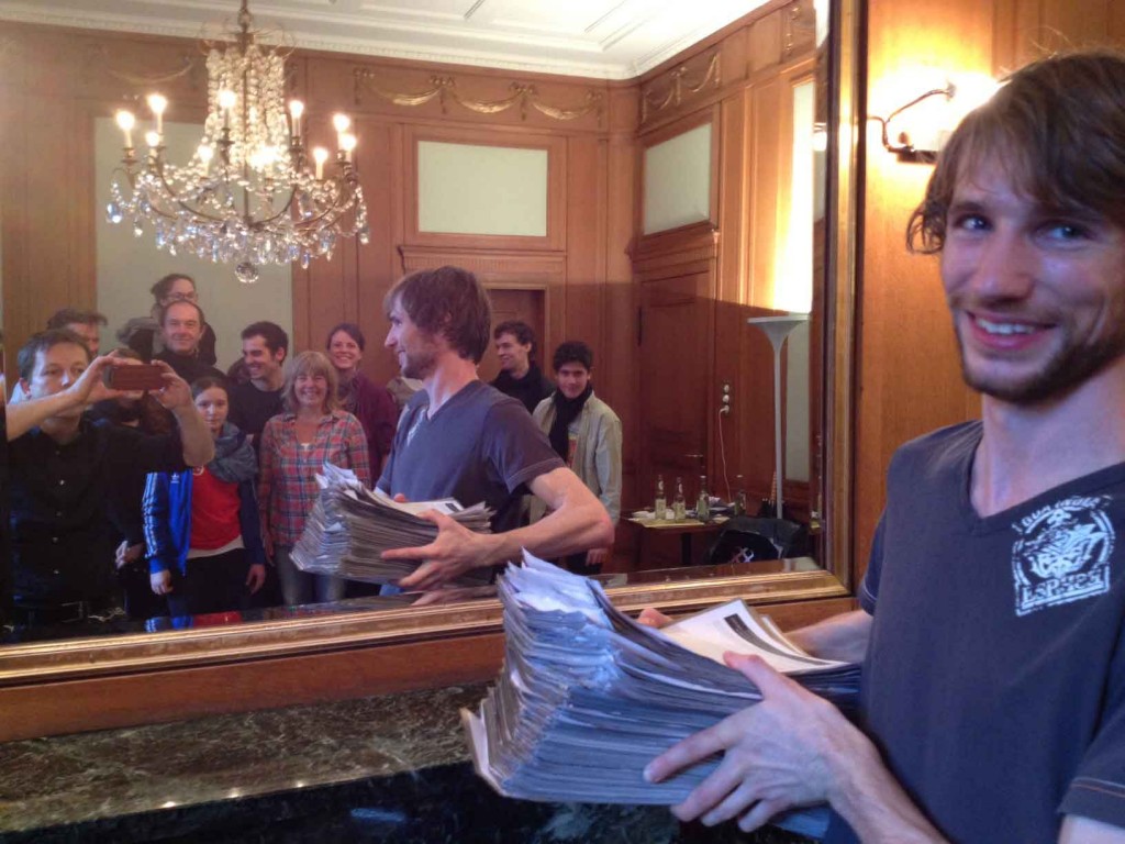 Es wurde ein berührend, kraftvoller Sammeltag – trotz Regen. Mit zwanzig sprudelnden Menschen zogen wir in Basel aus der Mitte los und sammelten 454 neue Unterschriften. Die Stimmung war schon am gemeinsamen z’Morge gut und produktiv, denn wir konnten mit 1091 Unterschriften aus der Langestrecke der letzten beiden Wochen starten. Nach drei Sammelstunden treffen wir wieder beglückt und erschöpft in der Mitte zusammen und ich merke: Die Generation Grundeinkommen gibt mir Kraft, zusammen kann man mehr und ist man mehr. Ein Dank an meine MitsammlerInnen mit dem Regenschirm.