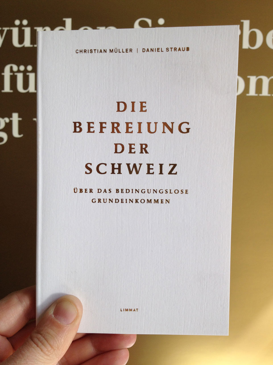 Im Februar 2012 erschien beim Limmat Verlag «Die Befreiung der Schweiz» von Daniel Straub und Christian Müller. Auf 120 Seiten verwandelt das Buch die Utopie Grundeinkommen in einen konkreten Zukunftsentwurf. Zwischen den Kapiteln gibt’s Gespräche mit Endo Anaconda, Ina Praetorius, Peter A. Fischer, Gudrun Sander, Rosmarie Zapfl, Klaus W. Wellershoff und Peter von Matt.
